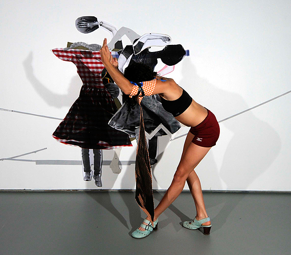 Marie Boyette, assistant professor-in-residence, dramatic arts, rehearsing a dance sequence for “The Pedagogical Puppet: Projects by Sally Smart.” (David Cool ’12 (SFA) for UConn)