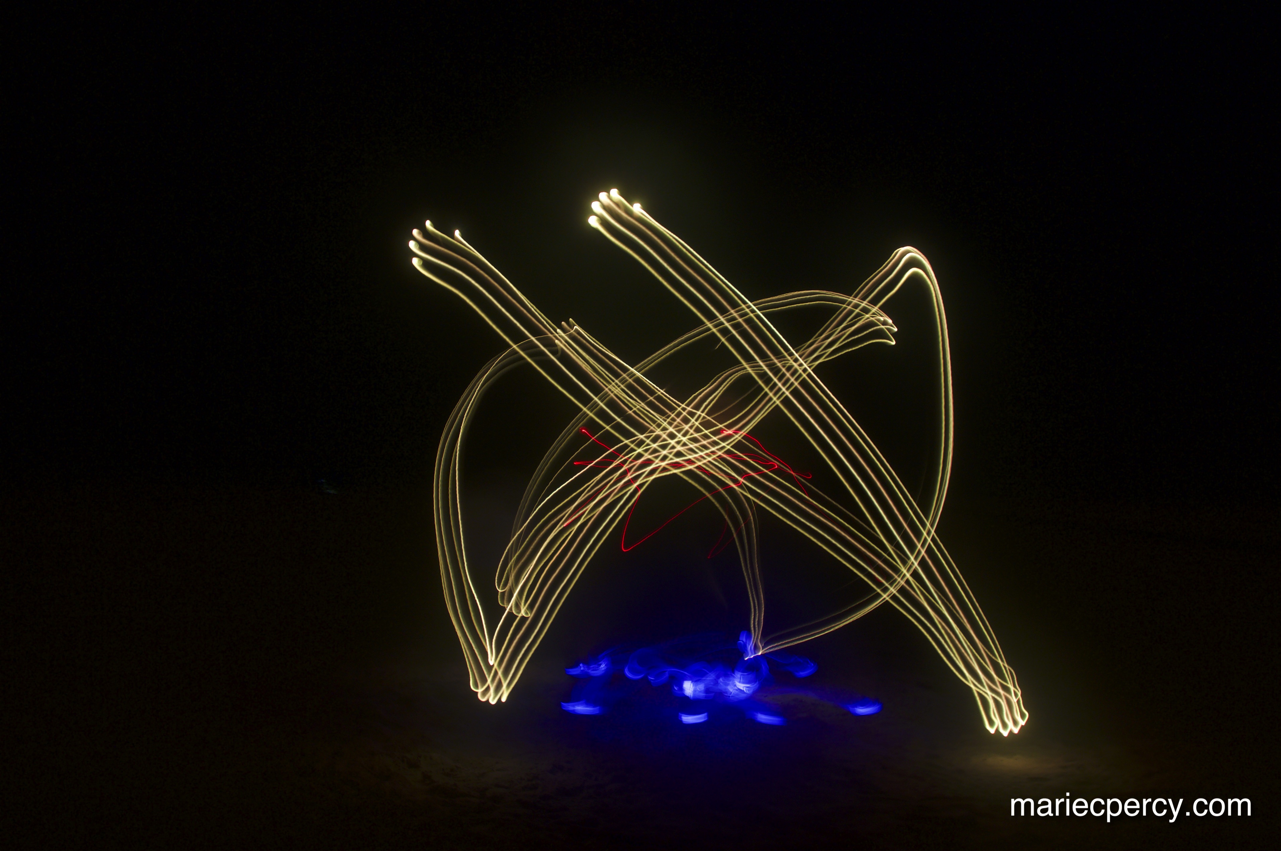 The Diagonal scale shot with the dancer facing the camera. The yellow lines track the right fingers, the red line tracks the chest movement, and the blue tracks the feet.